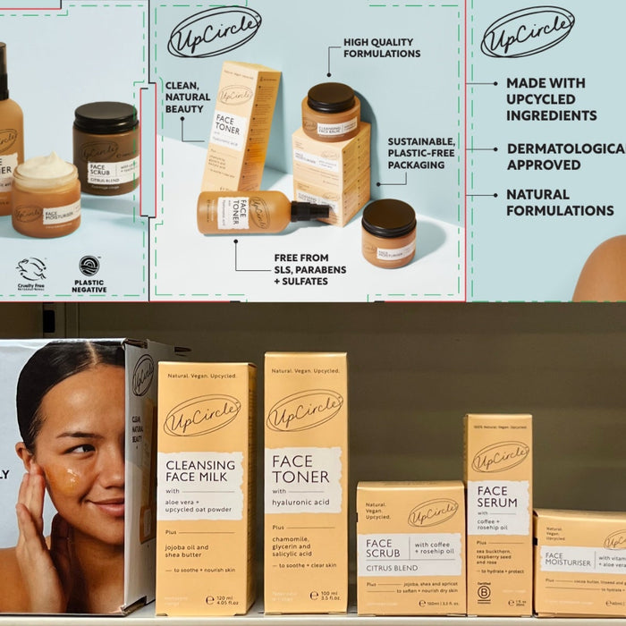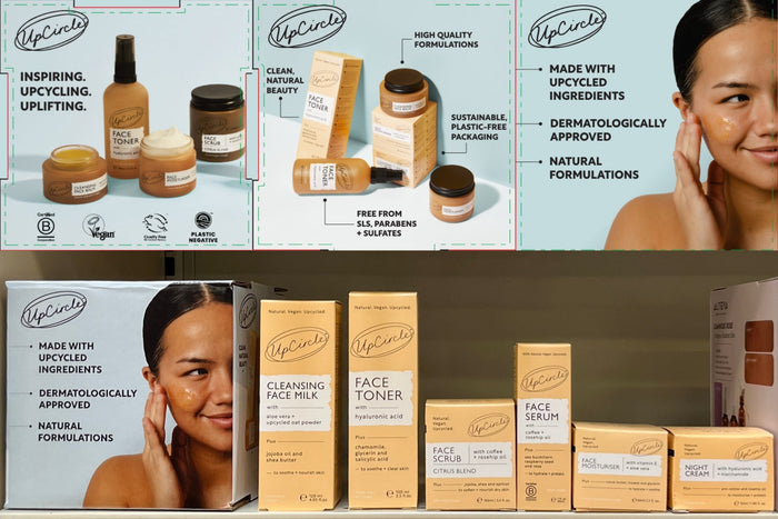 Our new instore POS - cube! Great for drawing attention to your favourite upcycled beauty brand, whilst educating your customers on the benefits. Featuring some of the infamous UpCircle callouts: