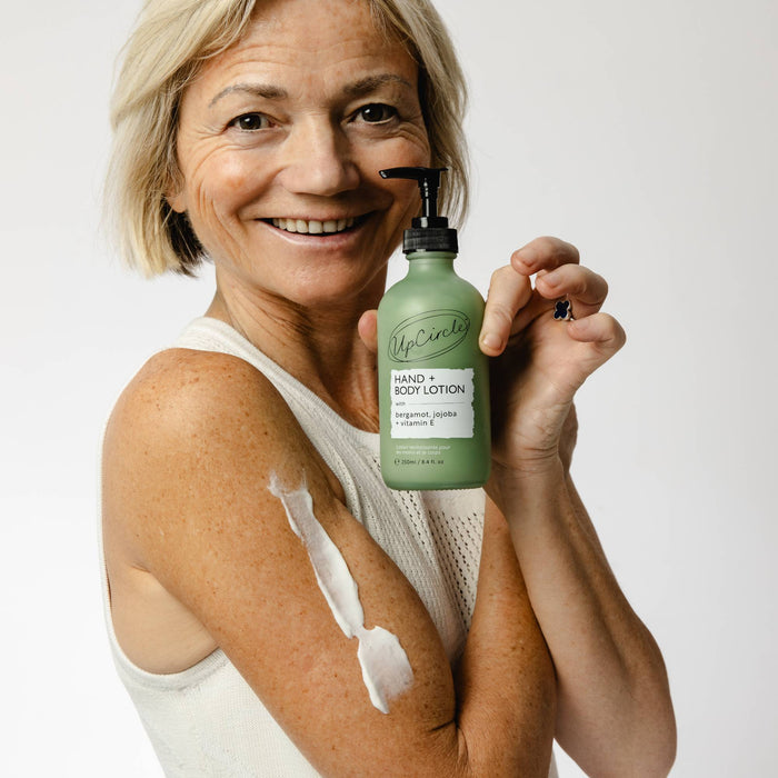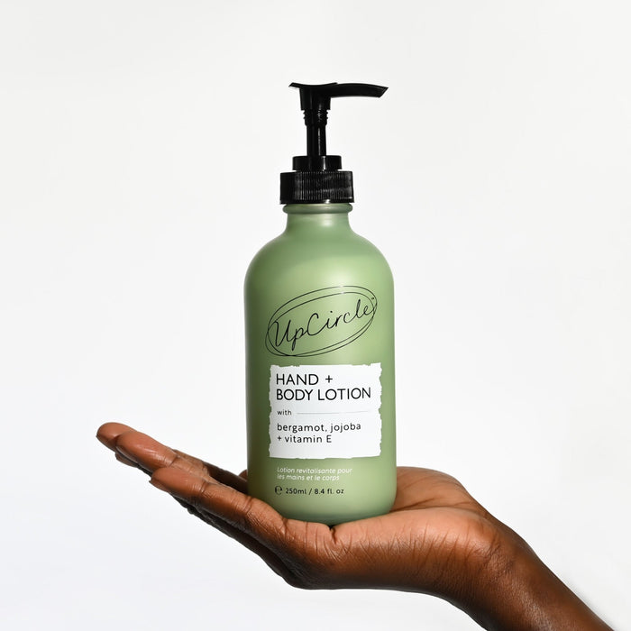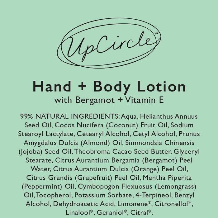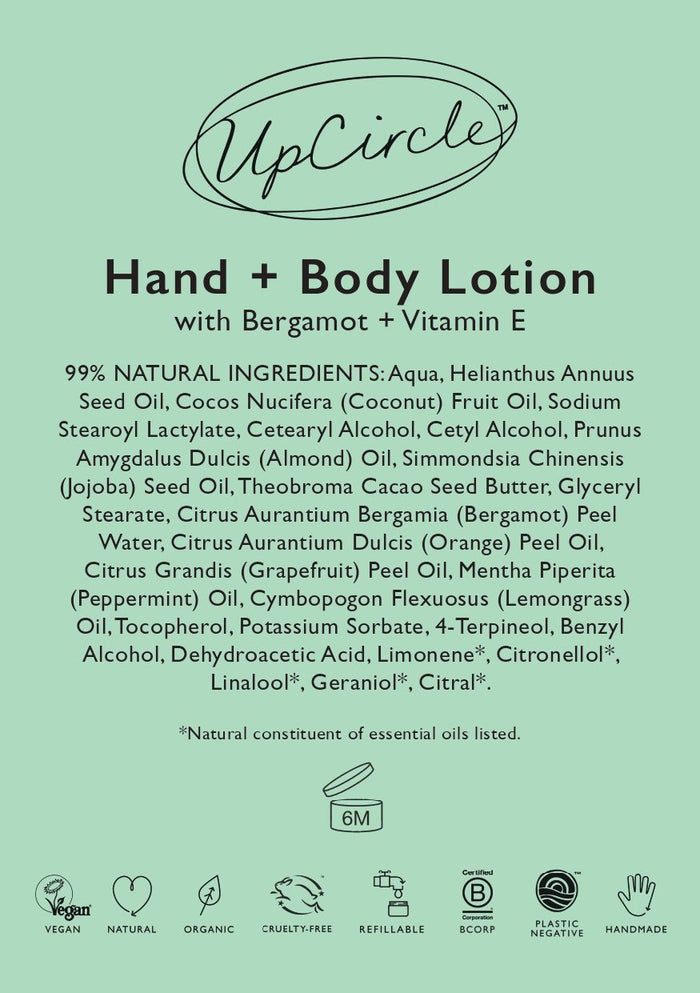 After washing your hands with our Hand + Body Wash, take care of dry skin with this citrus-scented 99% natural Hand + Body Lotion, fragranced with invigorating grapefruit & zesty lemongrass. Containing upcycled organic bergamot fruit water left over by the juicing industry, cocoa butter & jojoba this luscious lotion will help leave skin soft, nourished & revitalised.