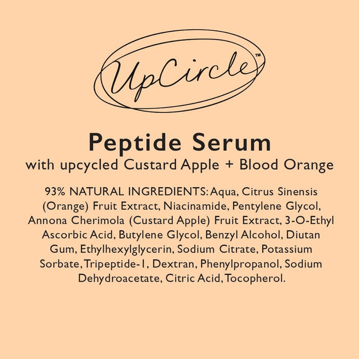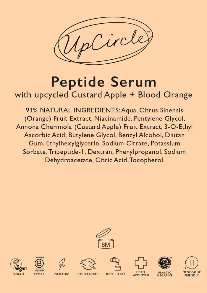 Inspiring, upcycling, uplifting: UpCircle’s Peptide Serum features upcycled custard apple, a skincare powerhouse that promotes a harmonious balance for the skin. It works wonders, reducing inflammation and enhancing skin’s resilience. It also contains upcycled blood orange water to protect skin from our ever changing environmental conditions.